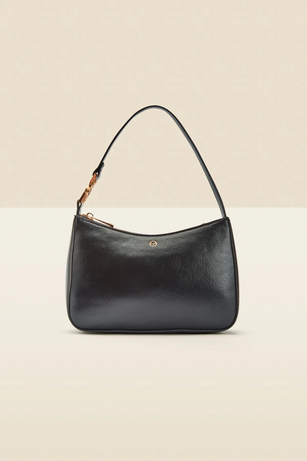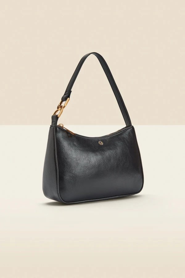 Black Luxe Gold Handle Detail Faux Leather Shoulder Bag