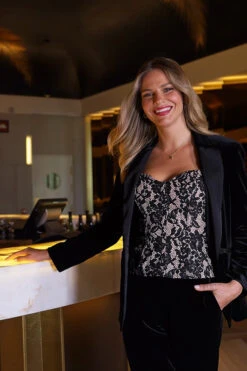 - Product composition: 92% Polyester 8% Elastane | Lining: 100% Polyester | Contrast Satin: 55% Polyester 45% Viscose