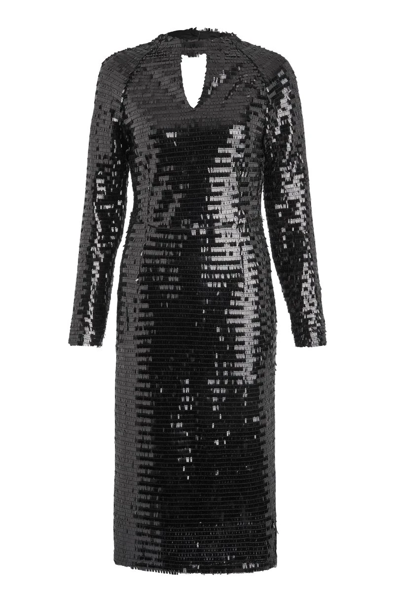 Black Sequin Cut Out Back Detail Dress