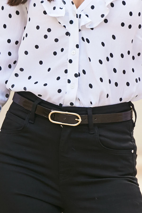 - Chic round gold buckle detail