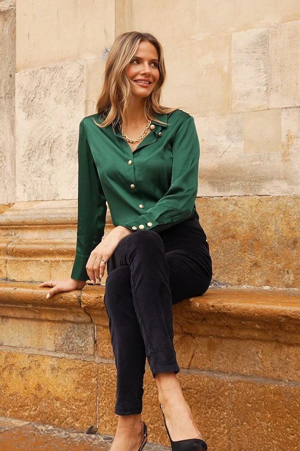 - Luxe gold button front