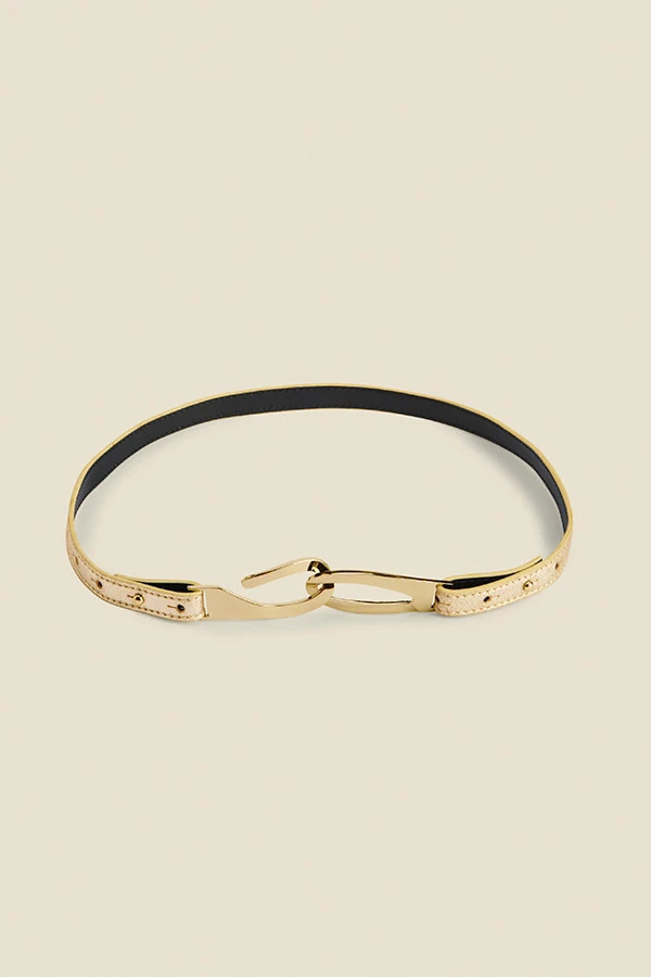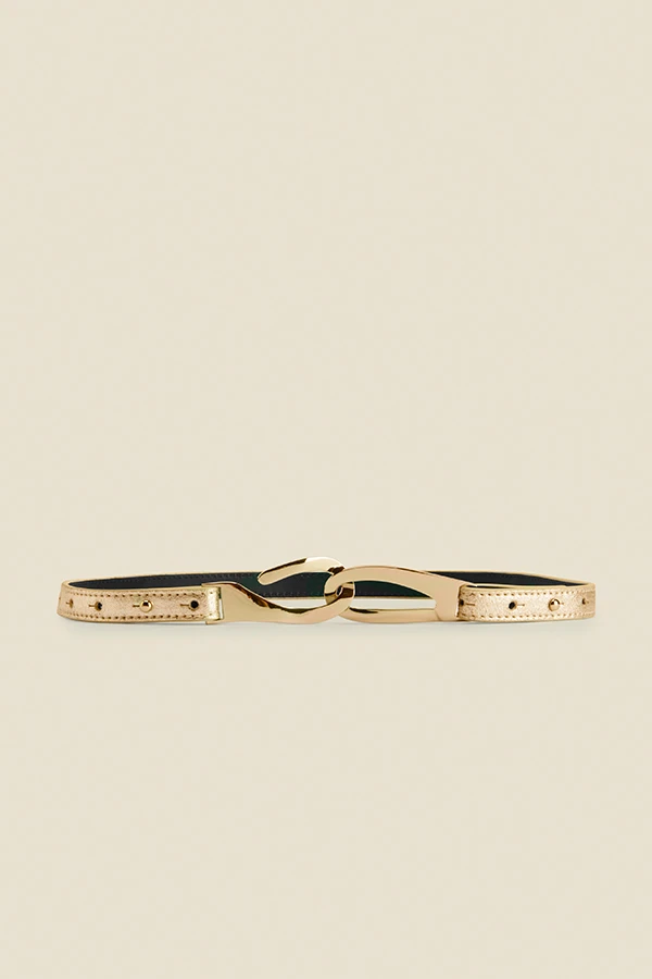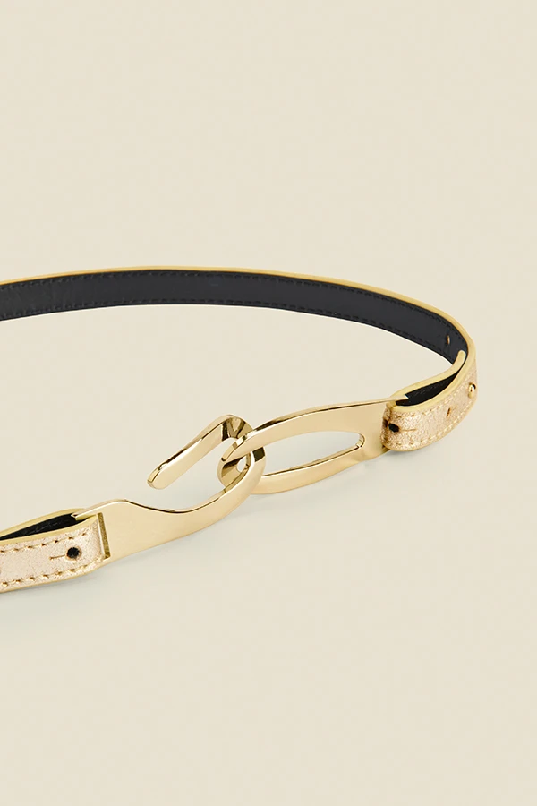 Gold Patent Leather Slim Waist Belt With Gold Clasp