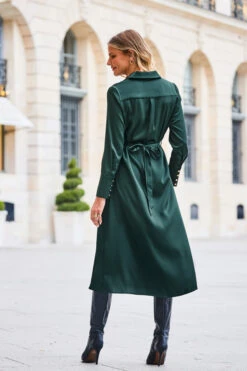 - Sumptuous satin fabric drapes softly over the body